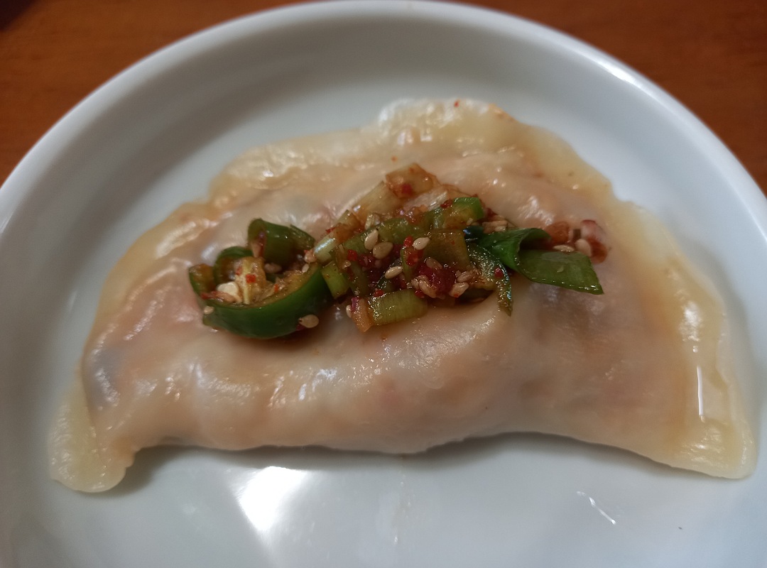 만두 먹으면 단무지 먹는 식으로 찐만두에 건더기 듬뿍 올려 드셔 보세요.