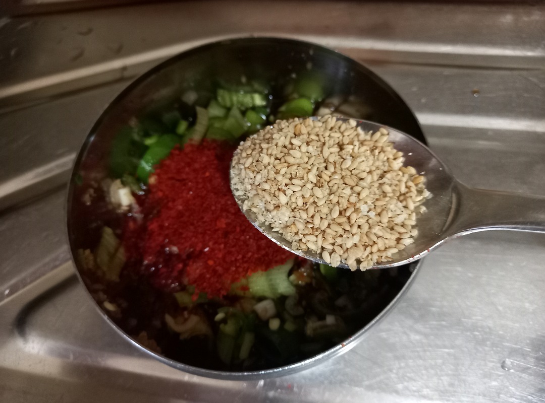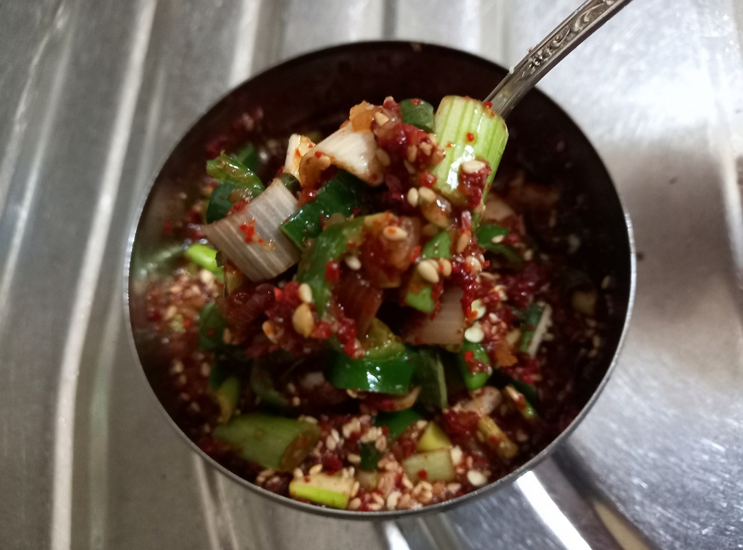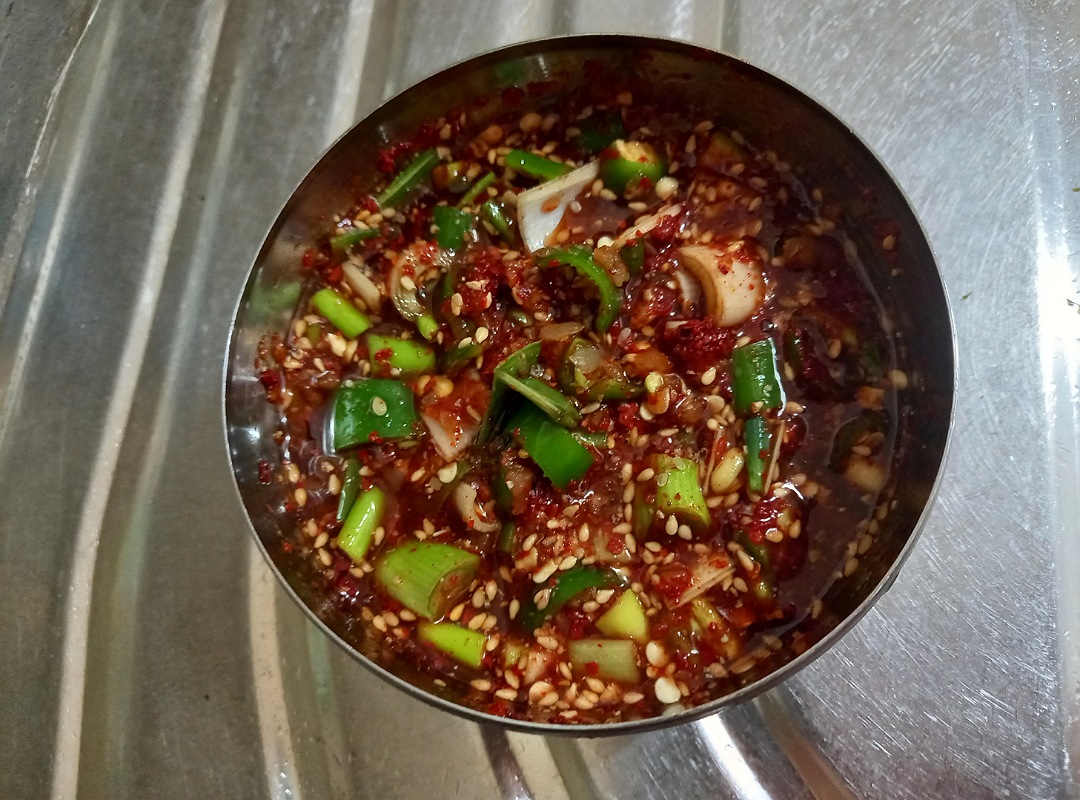 그럼 이렇게 양념간장이라고 하기엔 '파 고추간장 무침?' 느낌 나는 양념장이 됩니다.