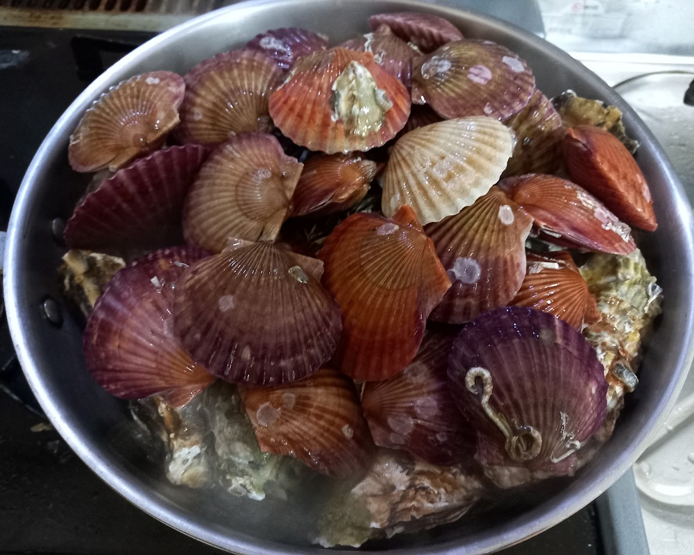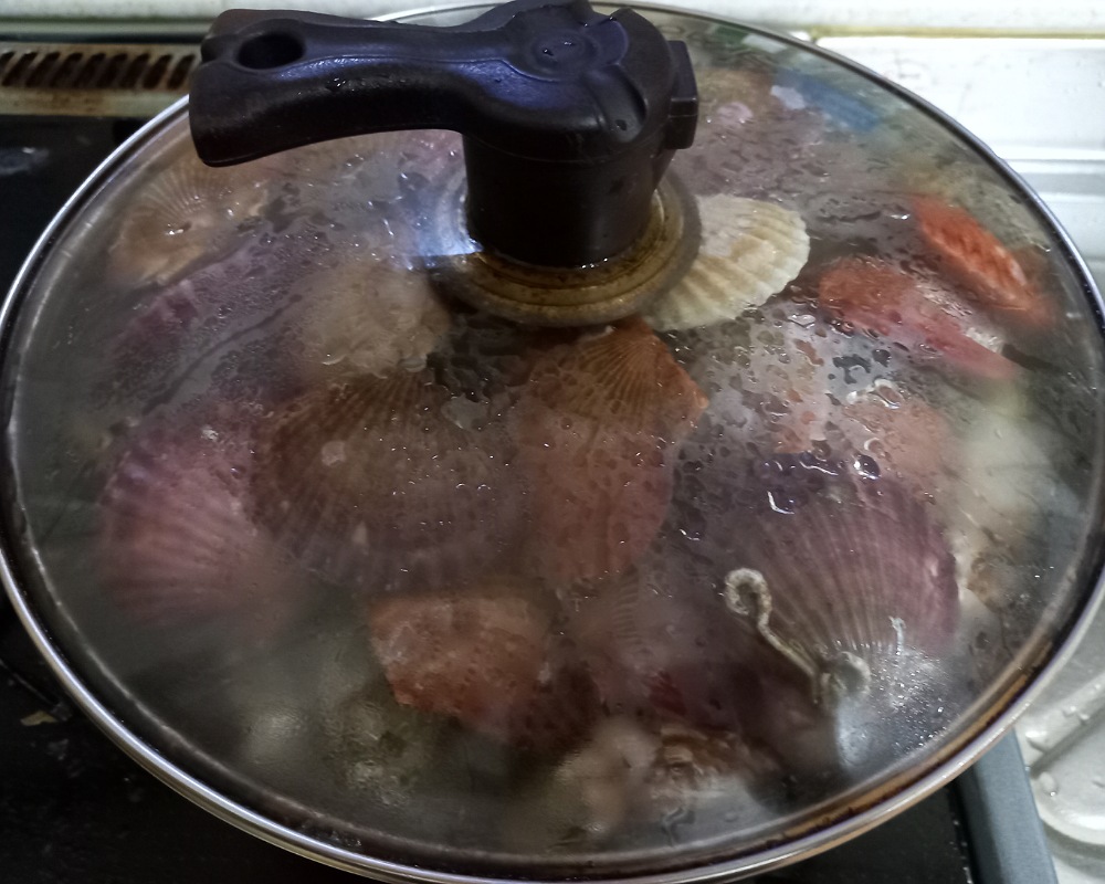 가리비를 함께 쪄 드실 분들은 지금 넣고 함께 5분 쪄주시면 되겠습니다.